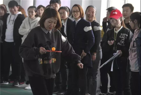 初入寒冬,大地漸漸變冷。在開幕式結(jié)束后,主持人宣讀大會紀(jì)律,6位隊(duì)長依次亮相并作賽前隊(duì)伍動員,隨后,主持人宣布運(yùn)動會正式開始。趣味運(yùn)動會的第一項(xiàng)便是:8*30米乒乓球接力跑。隊(duì)員們個(gè)個(gè)斗志昂揚(yáng),摩拳擦掌,竭盡全力的為本組榮譽(yù)而戰(zhàn)!