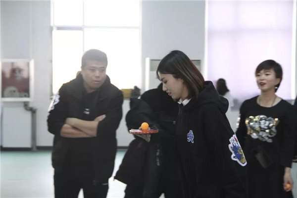 在比賽中隊(duì)友們相互鼓勵,相互配合。乒乓球接力不僅考驗(yàn)隊(duì)員的速度、耐心,更考驗(yàn)著隊(duì)員們團(tuán)結(jié)協(xié)作的能力,以及彼此的默契程度?,F(xiàn)場游戲活動中,比賽氣氛和諧快樂,大家都被簡單的互動游戲所感染,一陣陣吶喊助威聲從運(yùn)動場上傳來。