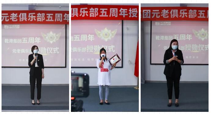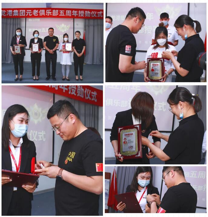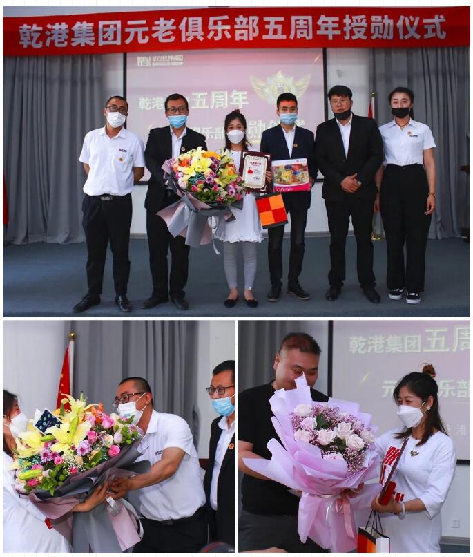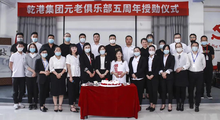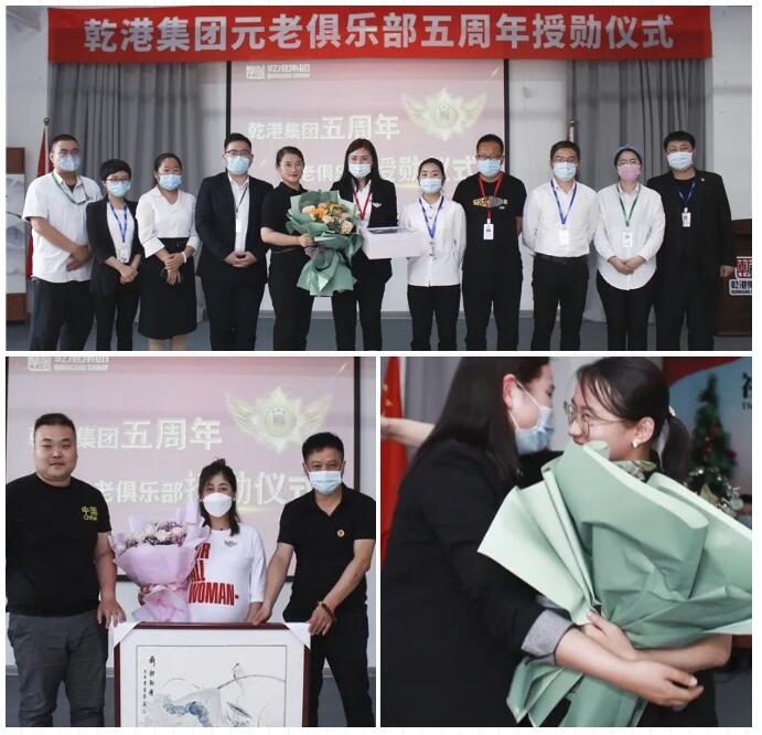 2020年5月28日,乾港集團(tuán)元老俱樂(lè)部五周年授勛儀式隆重召開(kāi),乾港集團(tuán)對(duì)3位工齡超過(guò)5年以上的老員工授予榮譽(yù)勛章,感謝元老們?cè)谇奂瘓F(tuán)發(fā)展中做出的貢獻(xiàn)。
